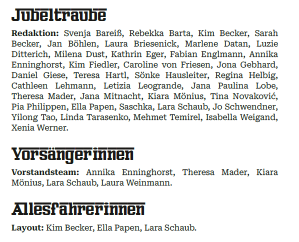 Mit unseren drei Ausgaben sind wir warmgelaufen und durch liebes Feedback von Lehrstühlen und einem Preis für unser Engagement am Fanzine nehmen wir weiter Fahrt auf. Wir tunen Layout, Textarten und Struktur. Wir verfestigen uns und fahren immer besser mit Vorständen und kompakterem Redaktions-Prozess. Unser Navi ist auf Erfolg eingestellt. Auch immer mehr neue Redaktionsmitglieder (rund 15 diese Ausgabe!) geben uns Fahrtwind.